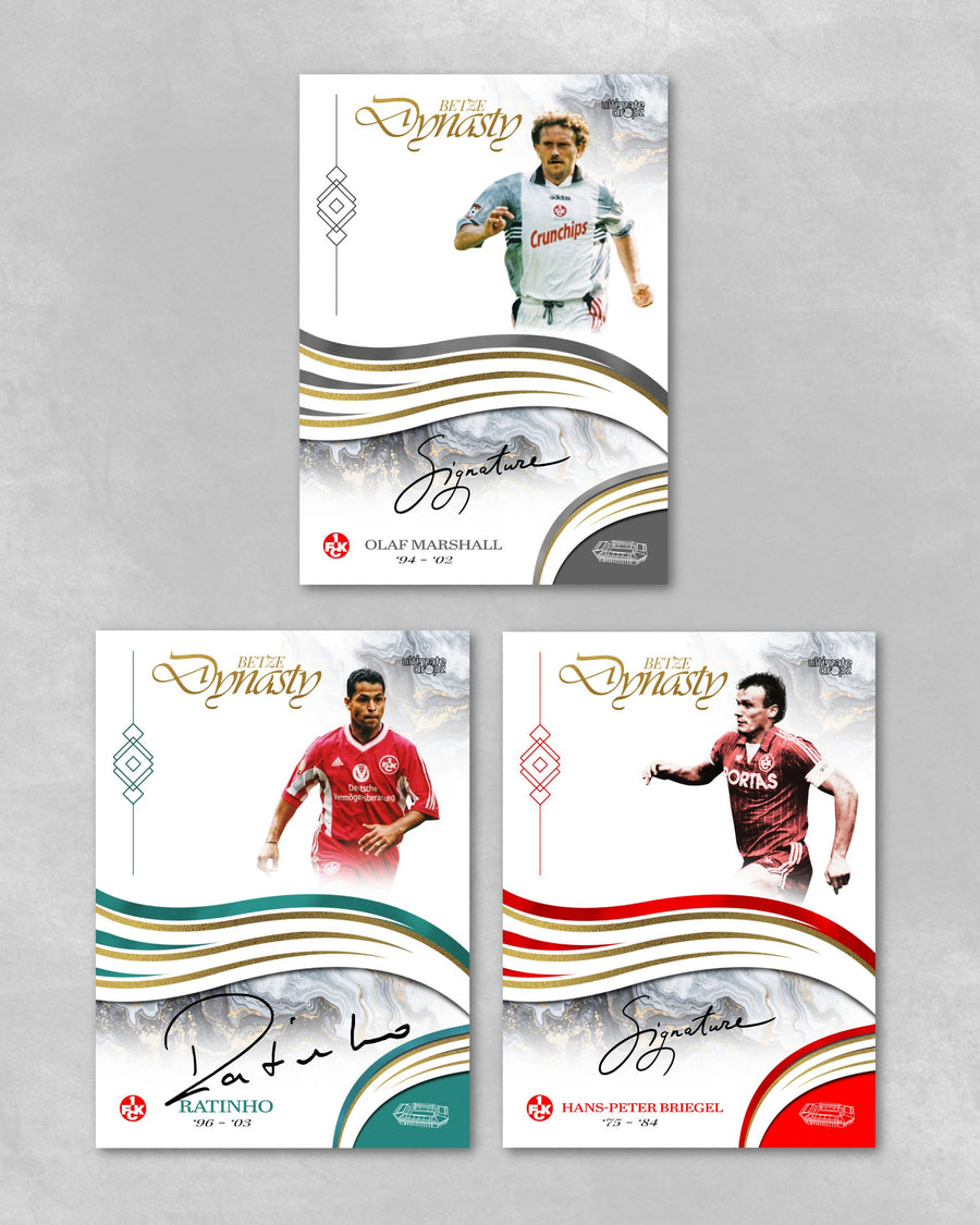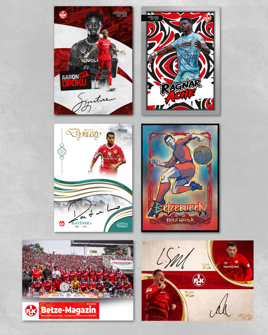 Offizielle Sammelkartenbox des 1. FC Kaiserslautern mit Fußball-Sammelkarten, die die Stars der Saison 24/25 und besondere Legenden aus der Vereinsgeschichte zeigen, mit einer garantierten Autogrammkarte pro Box.