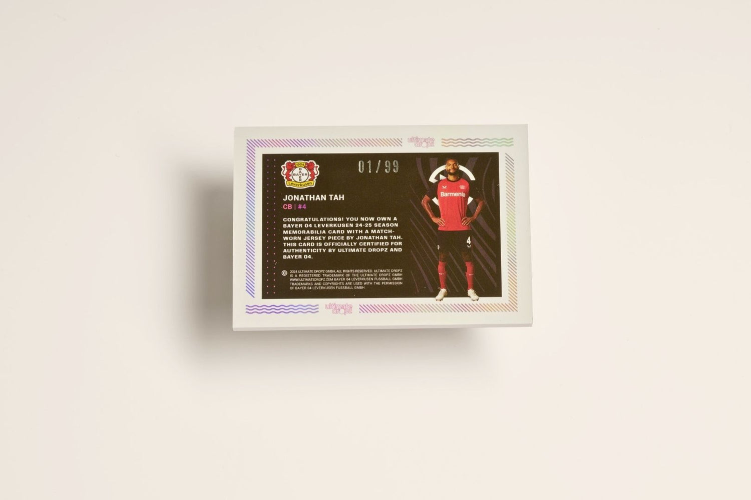 Die offizielle Premium-Sammelkartenbox von Bayer 04 Leverkusen mit den Stars der Saison 2024/25 in einer einzigartigen Verpackung. Jede Box enthält 6 Premium-Karten (150 pt Stärke) – jede Karte ist mindestens bis 99 nummeriert.