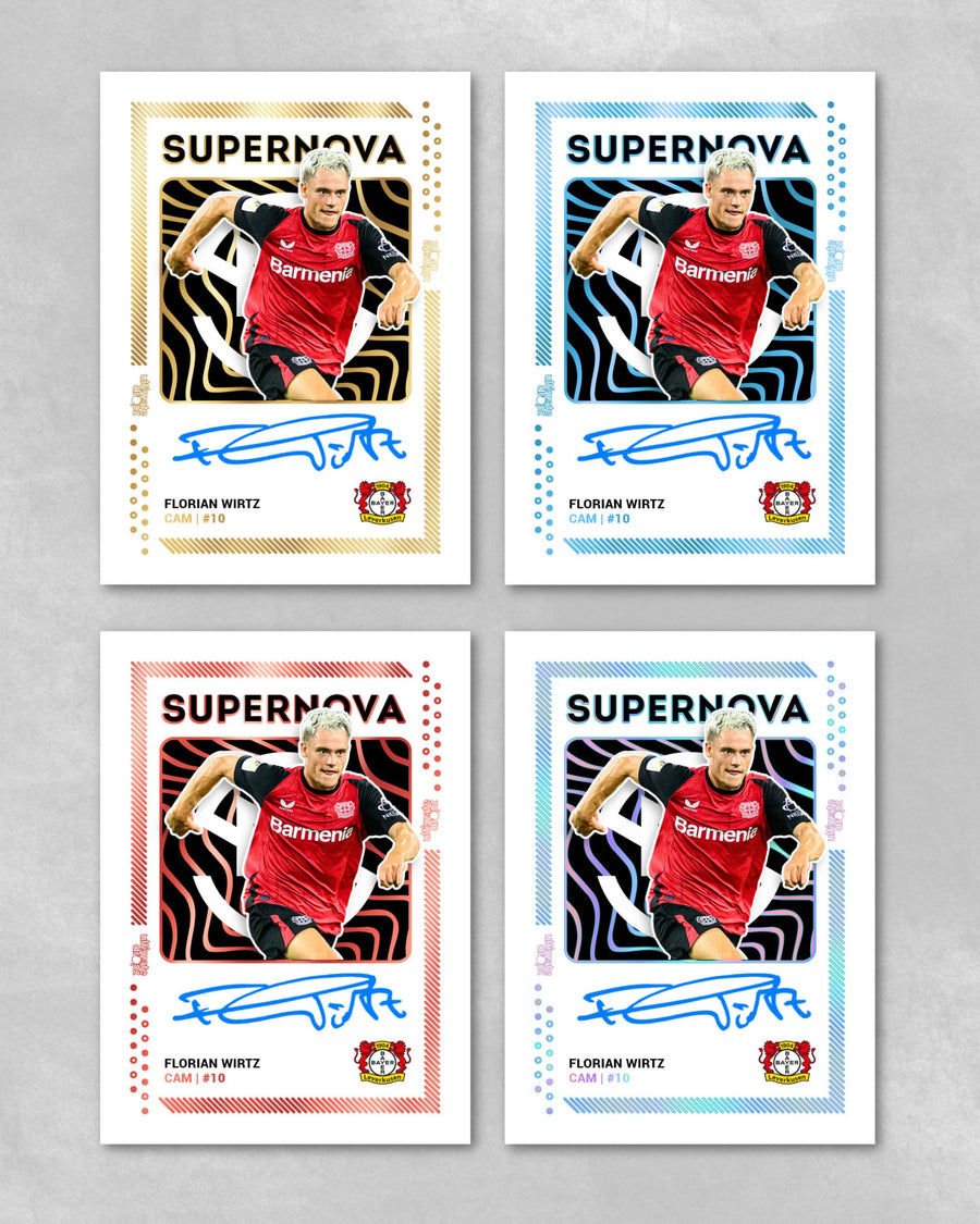 Offizielle Premium-Sammelkarten von Bayer Leverkusen, inklusive der ersten On-Card-Signature-Sammelkarten von Florian Wirtz
