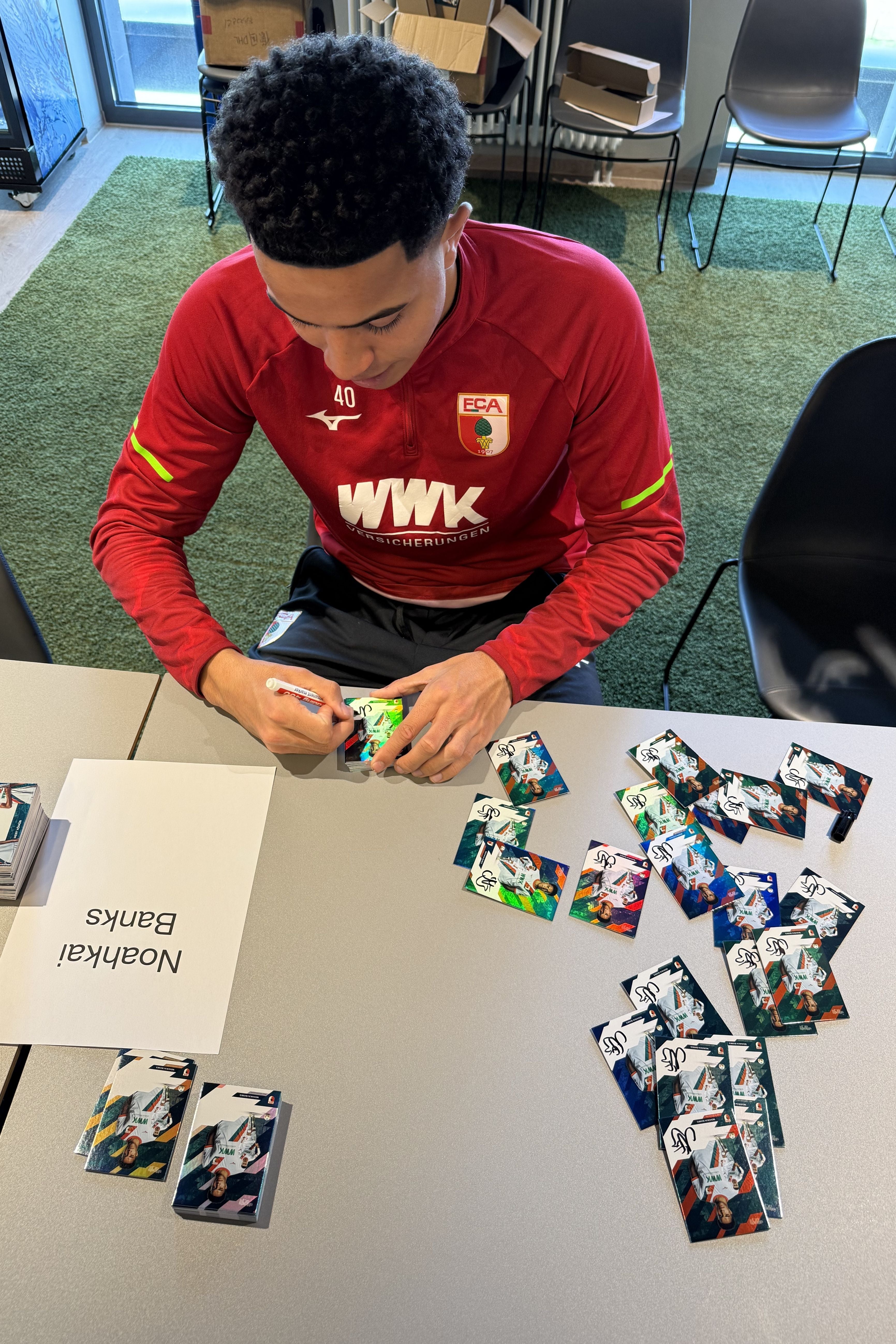 Die erste offizielle FC Augsburg Fußball-Sammelkarten-Box überhaupt mit Stars aus der Saison 2025/26 und besonderen Vereinslegenden – mit mindestens 1 On-Card Signatures pro Box garantiert.