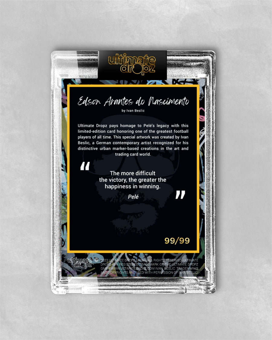 Erlebe die einzigartige Verbindung von Kunst und Kultur mit der exklusiven Pelé Trading Art Kollektion von Ivan Beslic mit persönlichen Signaturen des Künstlers.