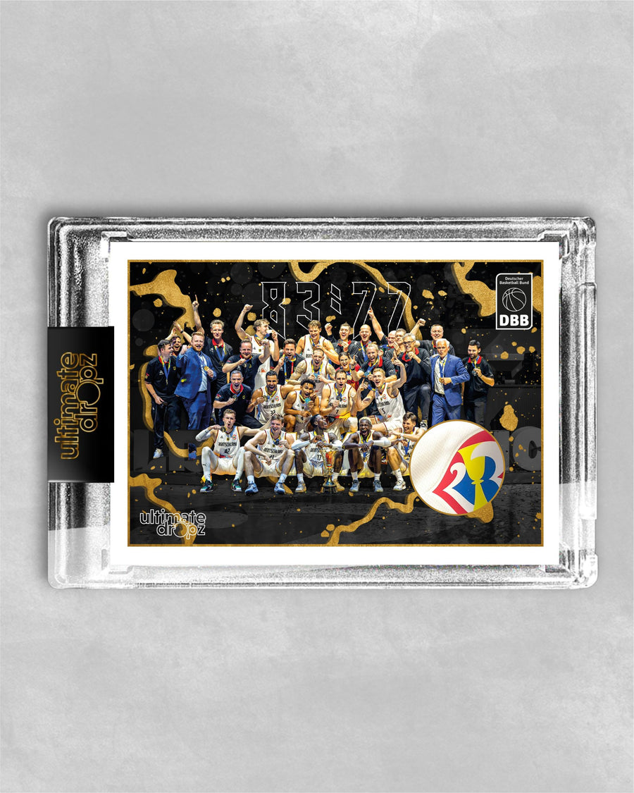 Exclusive match-worn Memorabilia basketball Trading Card, with an incorporated piece of jersey by Niels Giffey from the 2023 World Cup final against Serbia - Germany's historic first World Cup title. A real must-have for basketball fans and collectors.